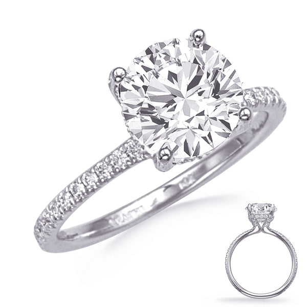 This Engagement Ring is available in 14K White Gold. There are a total of 58 stones. There are Rounds with a total carat weight of 0.33 set in a setting.