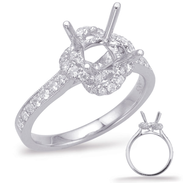 This Engagement Ring is available in 14K White Gold. There are a total of 42 stones. There are Rounds with a total carat weight of 0.33 set in a Micro Prong setting.
