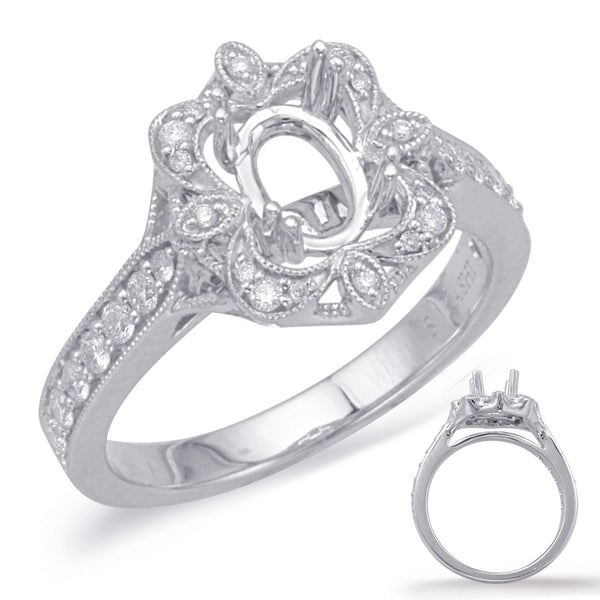 This Engagement Ring is available in 14K White Gold. There are a total of 28 stones. There are Rounds with a total carat weight of 0.3 set in a Micro Prong|Shared Prongs setting.