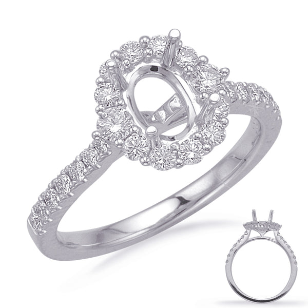 This Engagement Ring is available in 14K White Gold. There are a total of 26 stones. There are Rounds with a total carat weight of 0.58 set in a Micro Prong|Prong Set|Shared Prongs setting.