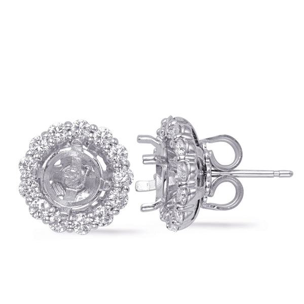This Earring is available in 14K White Gold. There are a total of 20 stones. There are Rounds with a total carat weight of 0.59 set in a setting.
