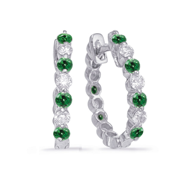 This Earring is available in 14K White Gold. There are a total of 14 stones. There are Emerald with a total carat weight of 0.45 set in a setting.There are Rounds stones with a total carat weight of 0.26 set in a .