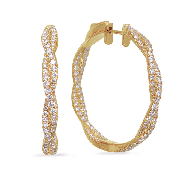 This Earring is available in 14K Yellow Gold. There are a total of 198 stones. There are Rounds with a total carat weight of 2.36 set in a Prong Set setting.