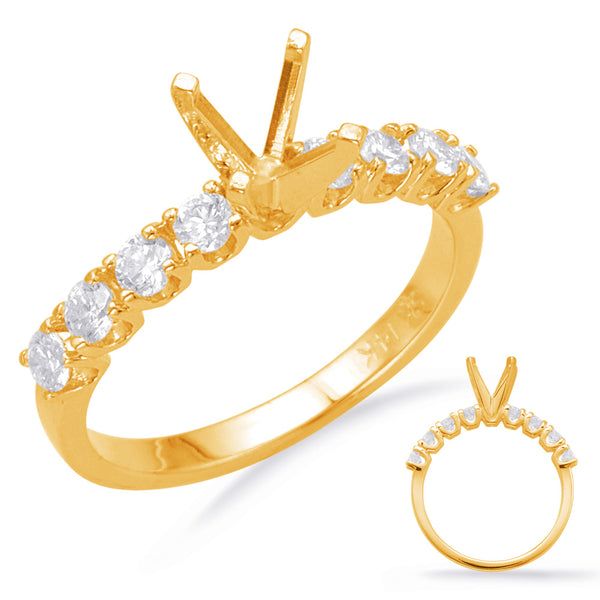 This Engagement Ring is available in 14K Yellow Gold. There are a total of 8 stones. There are Rounds with a total carat weight of 0.58 set in a Prong Set setting.