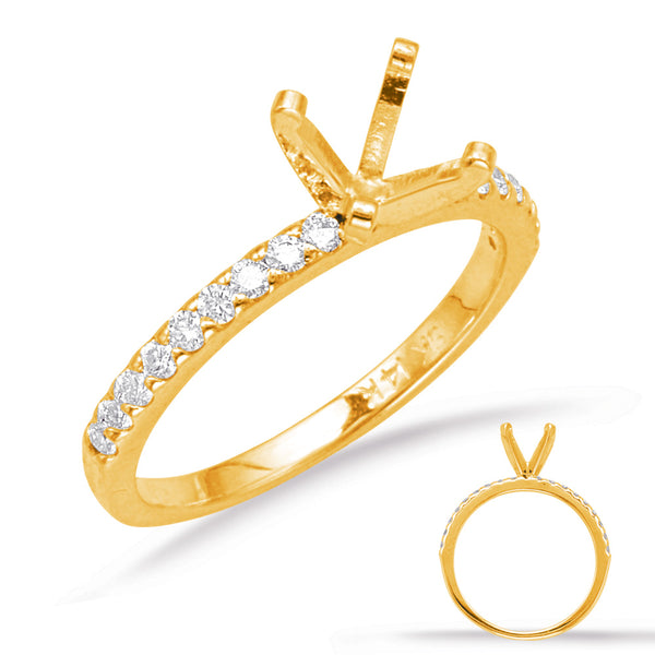 This Engagement Ring is available in 14K Yellow Gold. There are a total of 18 stones. There are Rounds with a total carat weight of 0.29 set in a Micro Prong|Shared Prongs setting.