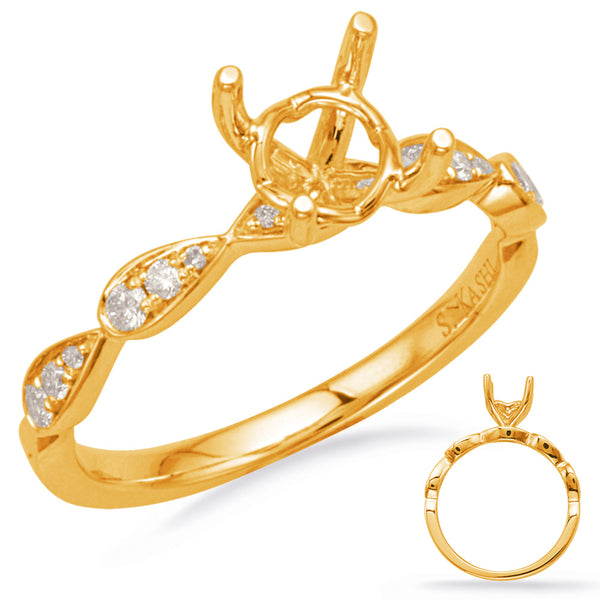 This Engagement Ring is available in 14K Yellow Gold. There are a total of 14 stones. There are Rounds with a total carat weight of 0.15 set in a Micro Prong setting.