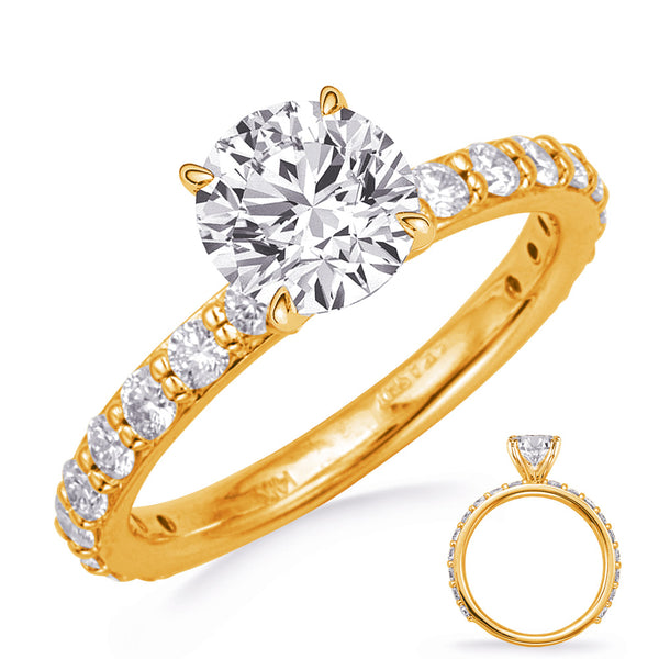 This Engagement Ring is available in 14K Yellow Gold. There are a total of 18 stones. There are Rounds with a total carat weight of 0.7 set in a Prong Set setting.