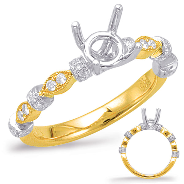 This Engagement Ring is available in 14K Yellow & White Gold. There are a total of 38 stones. There are Rounds with a total carat weight of 0.19 set in a Micro Pave|Micro Prong|Shared Prongs setting.
