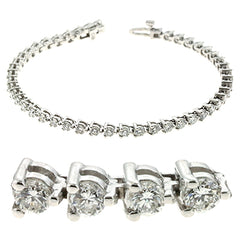 This Bracelet is available in 14K White Gold. There are a total of 46 stones. There are Round with a total carat weight of 5 set in a setting.