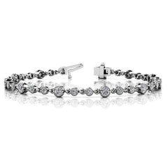 This Bracelet is available in 14K White Gold. There are a total of 36 stones. There are Round with a total carat weight of 1.9 set in a setting.