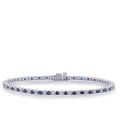 This Bracelet is available in 14K White Gold. There are a total of 65 stones. There are Round with a total carat weight of 2 set in a setting.There are Sapphire stones with a total carat weight of 3.47 set in a .