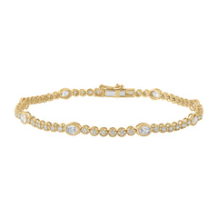 This Bracelet is available in 14K Yellow Gold. There are a total of 60 stones. There are Oval with a total carat weight of 0.9 set in a setting.There are Round stones with a total carat weight of 0.8 set in a .