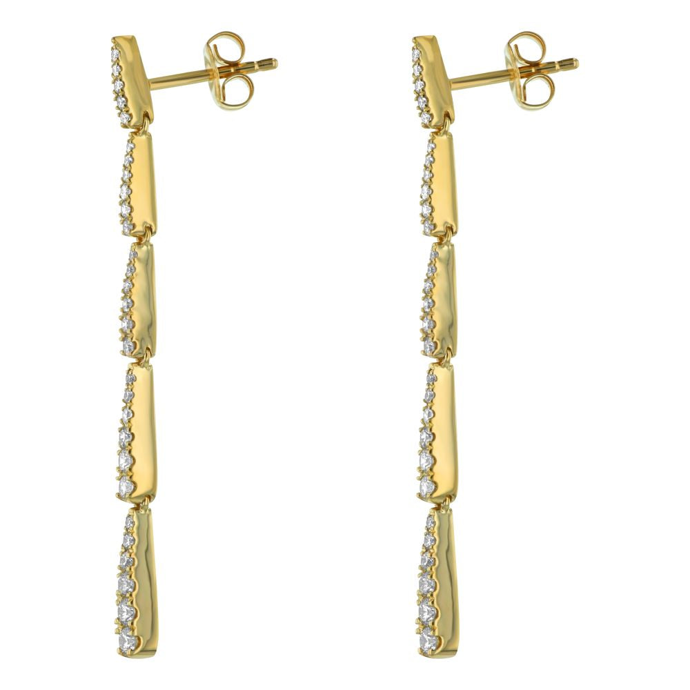 14K yellow gold graduated drop earrings set with 0.55 ct. round diamonds in five dangling sections design.