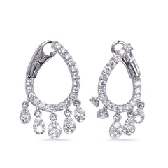 This Earring is available in 14K White Gold. There are a total of 76 stones. There are Rounds with a total carat weight of 1.41 set in a Bezel Set|Micro Prong setting.