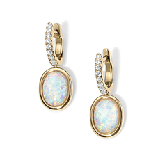 Chic earrings featuring 18 diamonds totaling 0.14 ct and two luminous opals weighing 0.98 ct. A perfect balance of sparkle and soft glow.