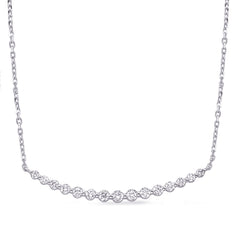 This Necklace is available in 14K White Gold. There are a total of 15 stones. There are Rounds with a total carat weight of 0.87 set in a Shared Prongs setting.