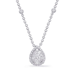 This Necklace is available in 14K White Gold. There are a total of 37 stones. There are Rounds with a total carat weight of 0.86 set in a Bezel Set|Micro Prong|Prong Set setting.