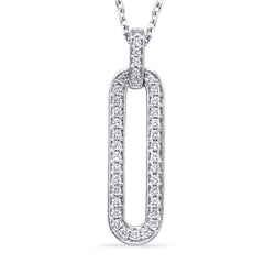 This Necklace is available in 14K White Gold. There are a total of 37 stones. There are Rounds with a total carat weight of 0.24 set in a Prong Set setting.