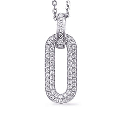 This Necklace is available in 14K White Gold. There are a total of 67 stones. There are Rounds with a total carat weight of 0.37 set in a Micro Pave setting.