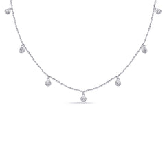 This Necklace is available in 14K White Gold. There are a total of 7 stones. There are Rounds with a total carat weight of 0.3 set in a setting.