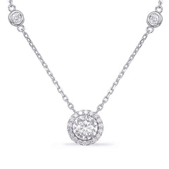 This Necklace is available in 14K White Gold. There are a total of 26 stones. There are Rounds with a total carat weight of 0.73 set in a setting.