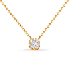 This Necklace is available in 14K Yellow Gold. There are a total of 9 stones. There are Rounds with a total carat weight of 0.21 set in a Micro Prong|Prong Set setting.