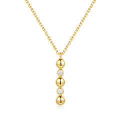 This Necklace is available in 14K Yellow Gold. There are a total of 2 stones. There are Rounds with a total carat weight of 0.05 set in a Bezel Set setting.