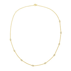 This Necklace is available in 14K Yellow Gold. There are a total of 9 stones. There are Emerald Cut with a total carat weight of 0.99 set in a Bezel Set setting.
