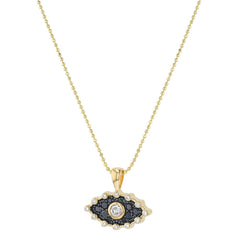 14K yellow gold EVIL EYE necklace set with 0.40 carat round brilliant black and white diamonds and detailed with black rhodium finish. Chain sold separately.
