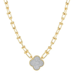 14K yellow gold clover necklace set with 0.45 carat round brilliant diamonds on heavy hardware chain (25 grams). Price includes chain.