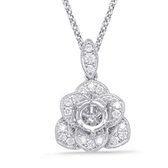 This Pendant is available in 14K White Gold. There are a total of 21 stones. There are Rounds with a total carat weight of 0.16 set in a Micro Prong setting.
