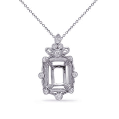 This Pendant is available in 14K White Gold. There are a total of 11 stones. There are Rounds with a total carat weight of 0.12 set in a Bezel Set setting.