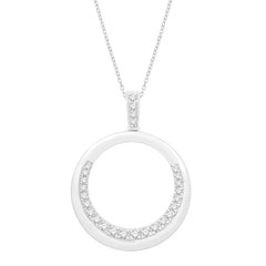 This Pendant is available in 14K White Gold. There are a total of 26 stones. There are Rounds with a total carat weight of 0.28 set in a Micro Prong|Prong Set setting.