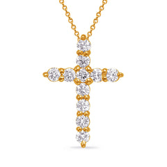 This Pendant is available in 14K Yellow Gold. There are a total of 11 stones. There are Rounds with a total carat weight of 0.5 set in a setting.