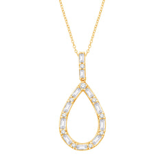 This Pendant is available in 14K Yellow Gold. There are a total of 21 stones. There are Baguette with a total carat weight of 0.27 set in a Prong Set setting.There are Rounds stones with a total carat weight of 0.07 set in a Prong Set.
