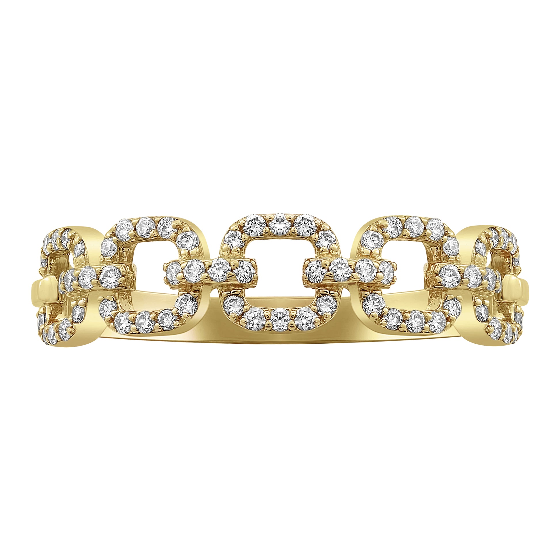 14K yellow gold semi eternity band ring set with 0.33 ct. white brilliant diamonds in cushion links design.