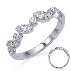 This Band is available in 14K White Gold. There are a total of 17 stones. There are Round with a total carat weight of 0.26 set in a Bezel Set|Micro Pave setting.