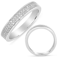 This Band is available in 14K White Gold. There are a total of 52 stones. There are Round with a total carat weight of 0.32 set in a Micro Pave setting.