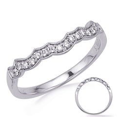 This Band is available in 14K White Gold. There are a total of 16 stones. There are Round with a total carat weight of 0.15 set in a Bezel Set|Micro Prong setting.