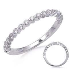 This Band is available in 14K White Gold. There are a total of 17 stones. There are Round with a total carat weight of 0.31 set in a Prong Set|Shared Prongs setting.