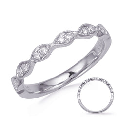 This Band is available in 14K White Gold. There are a total of 12 stones. There are Round with a total carat weight of 0.13 set in a Micro Pave|Micro Prong setting.