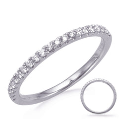 This Band is available in 14K White Gold. There are a total of 21 stones. There are Round with a total carat weight of 0.22 set in a Micro Prong setting.