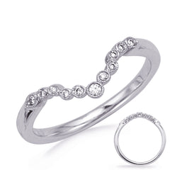 This Band is available in 14K White Gold. There are a total of 11 stones. There are Round with a total carat weight of 0.07 set in a Bezel Set setting.