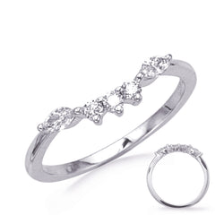This Band is available in 14K White Gold. There are a total of 5 stones. There are Marquise with a total carat weight of 0.17 set in a Prong Set setting.There are Round stones with a total carat weight of 0.11 set in a Prong Set.