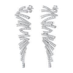 14K white gold maze drop earrings set with 2.30 ct. white round diamonds dangling from post and pushback.