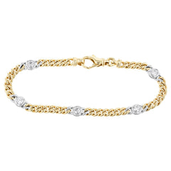 14K yellow gold curb link bracelet set with 5 diamonds total 1.0 ct. in white gold bezels. The bracelet weighs approx. 15 grams, 7.5 inch long and locks with lobster clasp.