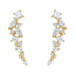 14K yellow gold ear climber style earrings set with 1.00 ct. princess, marquise and round diamonds. Part of our Ear Climbers collection.
