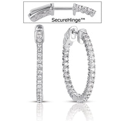 This Earring is available in 14K White Gold. There are a total of 60 stones. There are Rounds with a total carat weight of 0.86 set in a Prong Set setting.