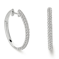 This Earring is available in 14K White Gold. There are a total of 110 stones. There are Rounds with a total carat weight of 1.05 set in a setting.
