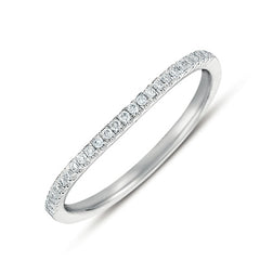 This Band is available in 14K White Gold. There are a total of 26 stones. There are Round with a total carat weight of 0.11 set in a Micro Prong setting.